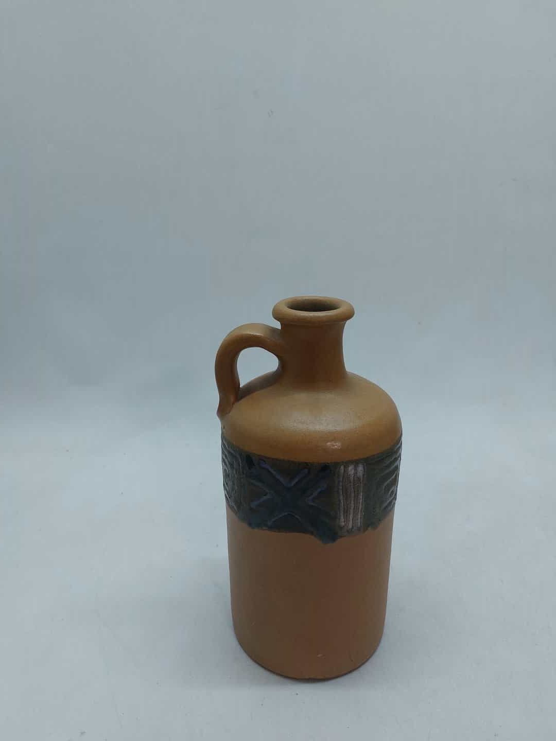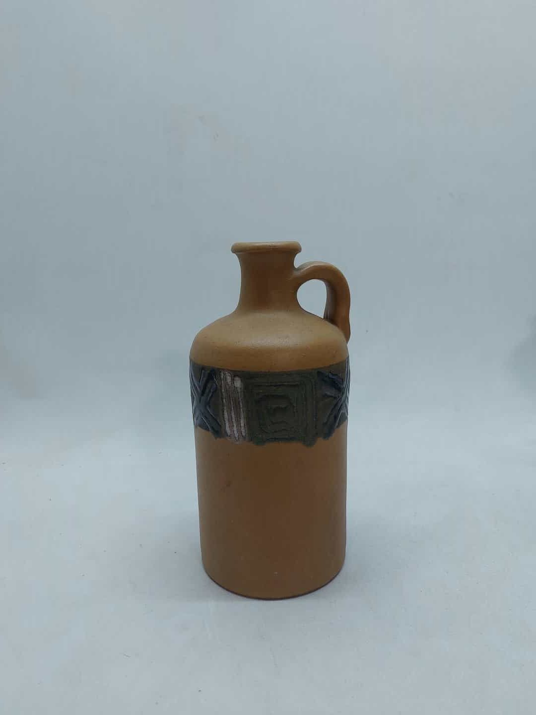 Vintage χειροποίητη κεραμική καράφα με σχέδια 21x10x9,5cm (με μικρό σπάσιμο στο κάτω μέρος, όπως φαίνεται)