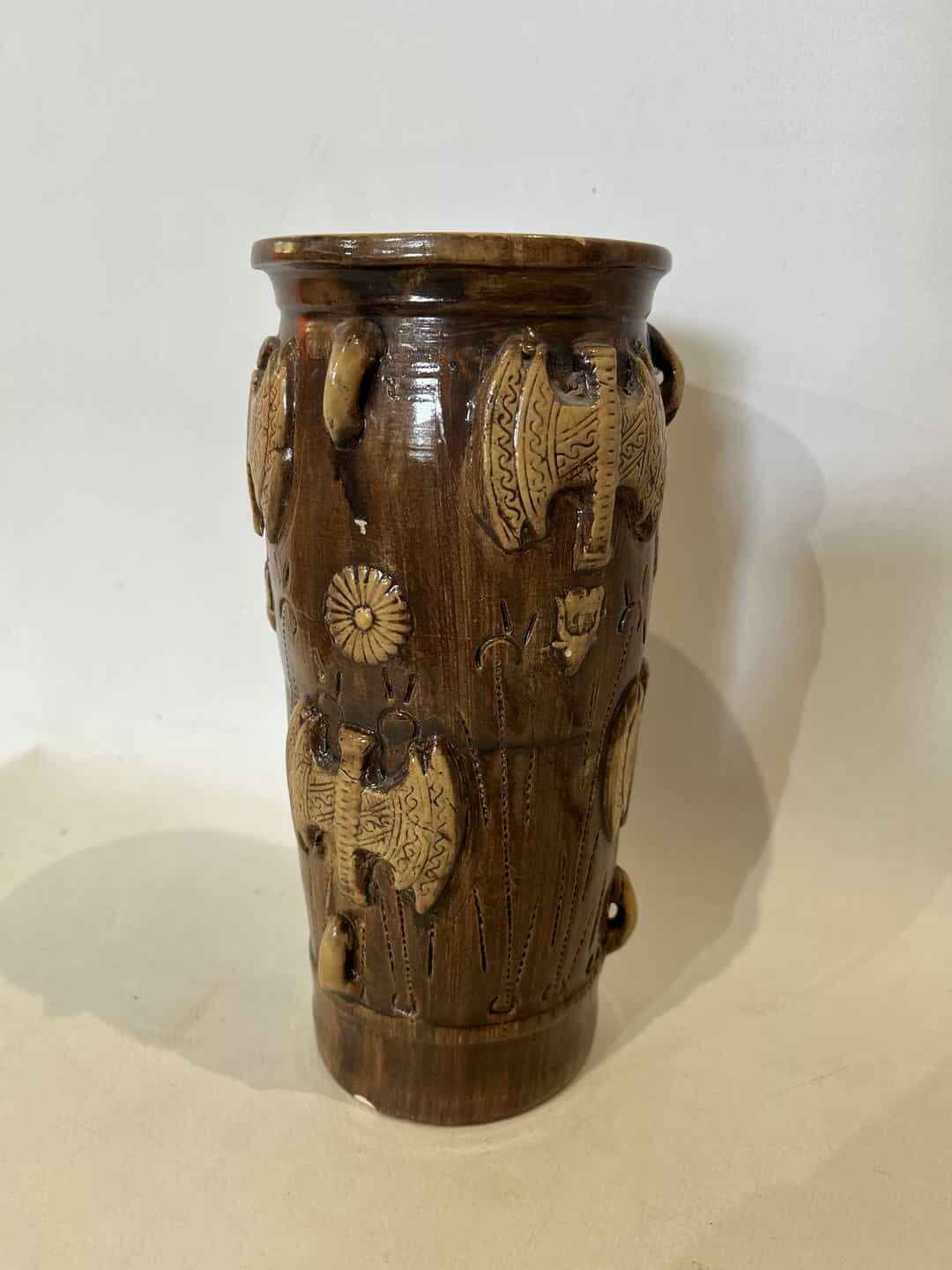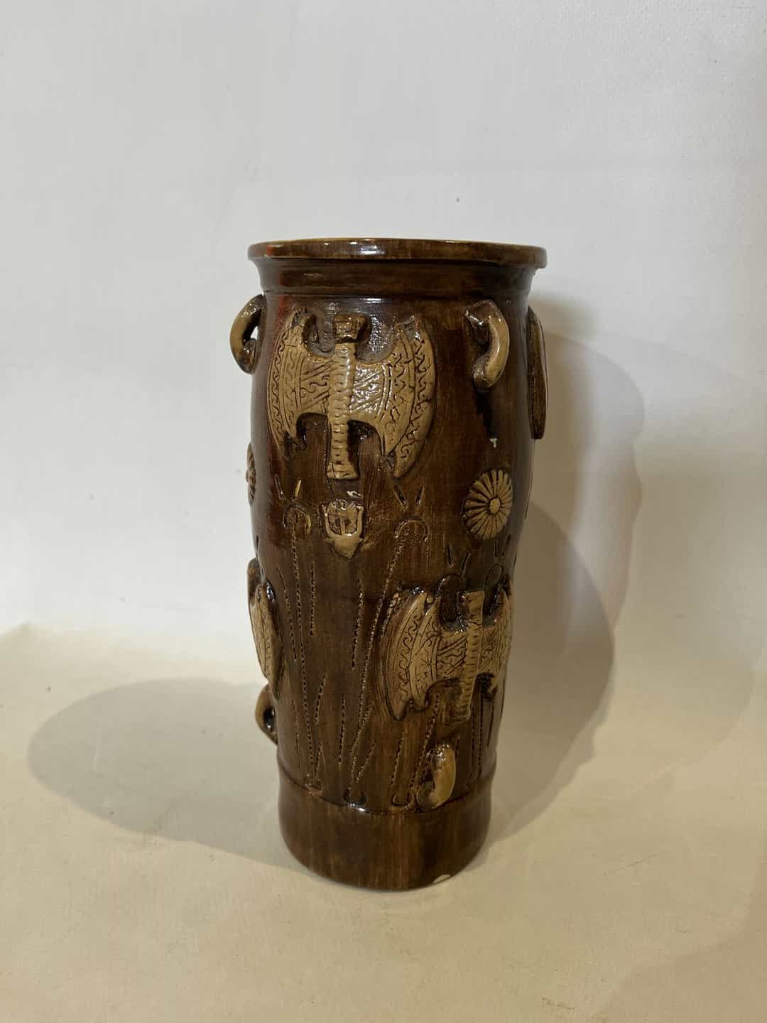 Vintage χειροποίητο κεραμικό βάζο με ανάγλυφα διακοσμητικά σχέδια Labrys 21×9 Κωδικός προϊόντος: #s16782