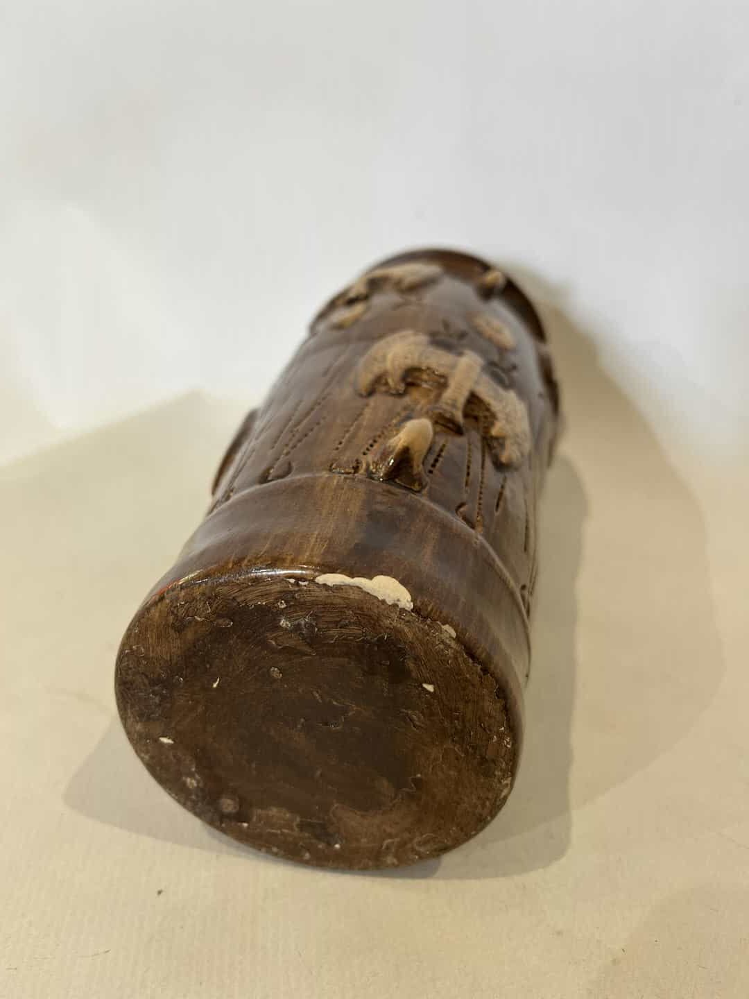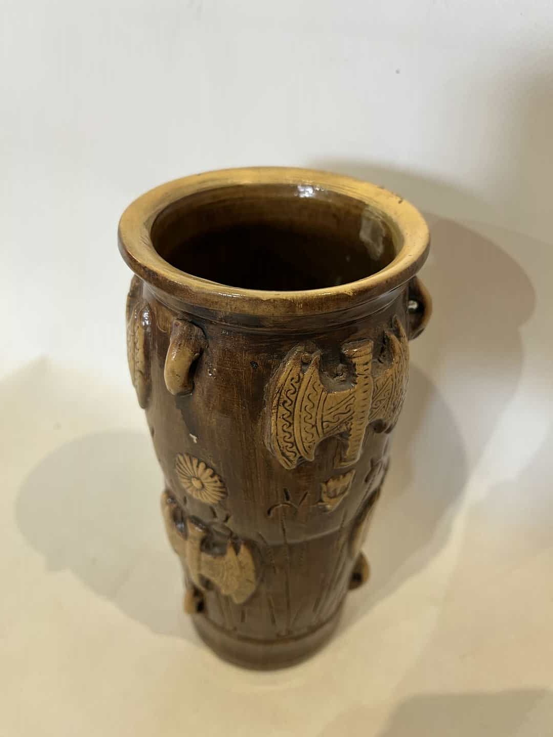 Vintage χειροποίητο κεραμικό βάζο με ανάγλυφα διακοσμητικά σχέδια Labrys 21×9