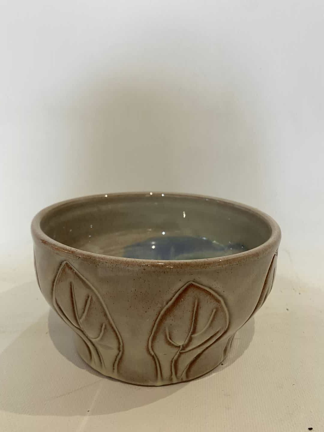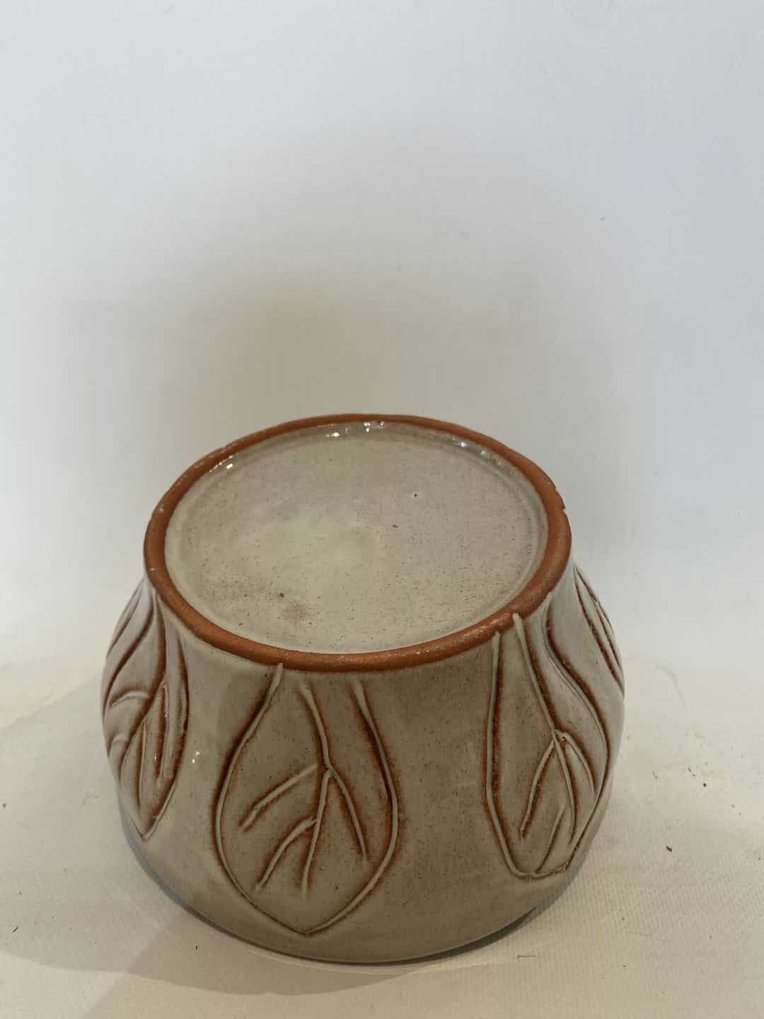 Vintage χειροποίητο κεραμικό μπολ με ανάγλυφα σχέδια  φύλλων 9×16  Κωδικός προϊόντος: #s12799