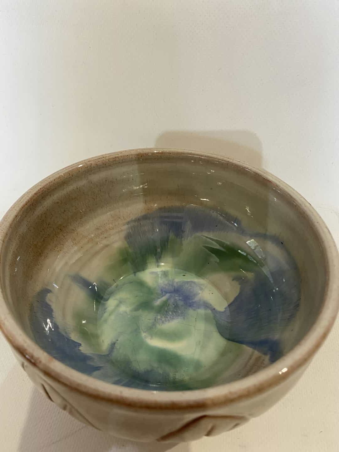 Vintage χειροποίητο κεραμικό μπολ με ανάγλυφα σχέδια φύλλων 9×16