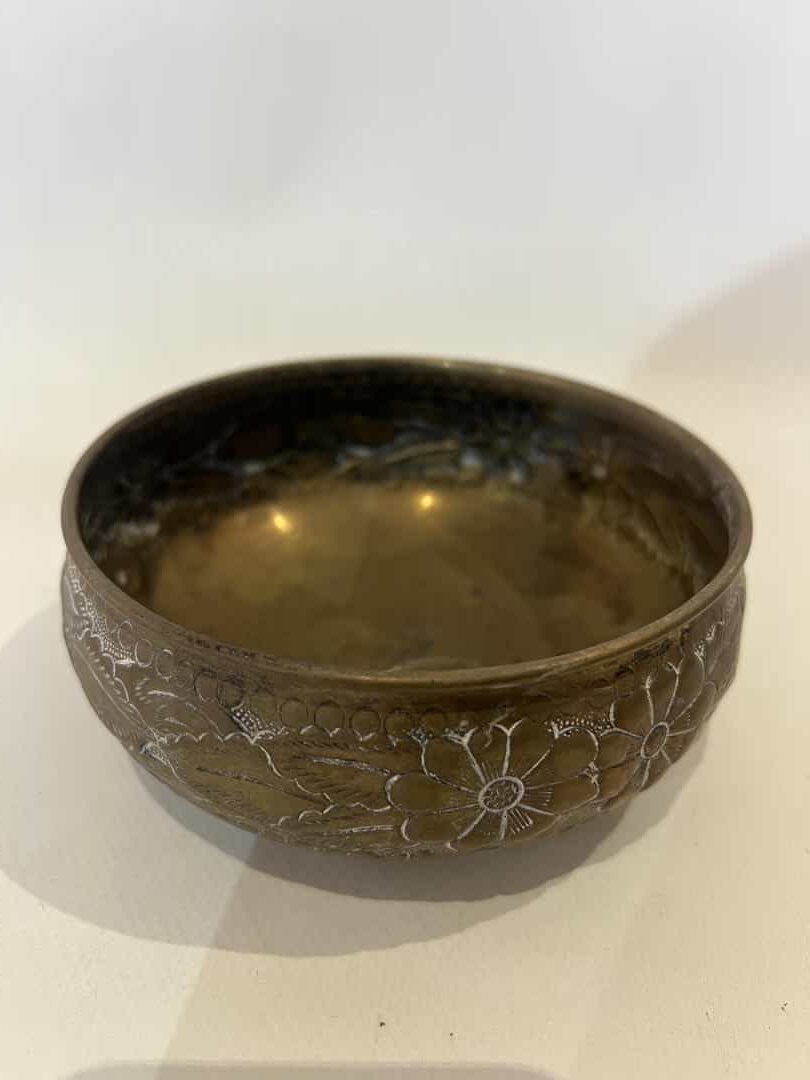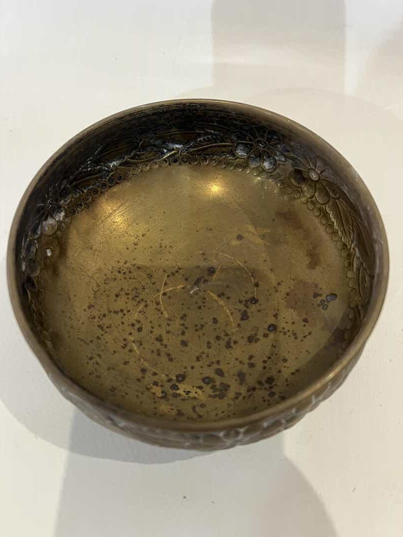 Vintage χειροποίητο ορειχάλκινο μπολ με ανάγλυφα σχέδια 5×13  Κωδικός προϊόντος: #s15524