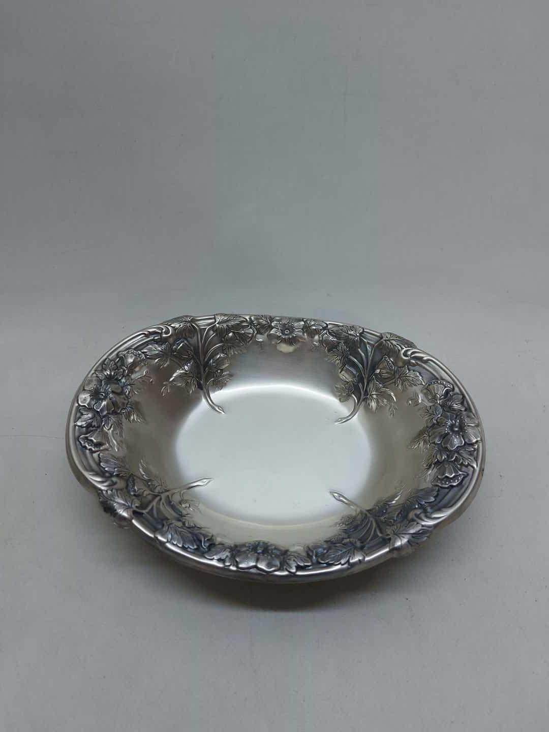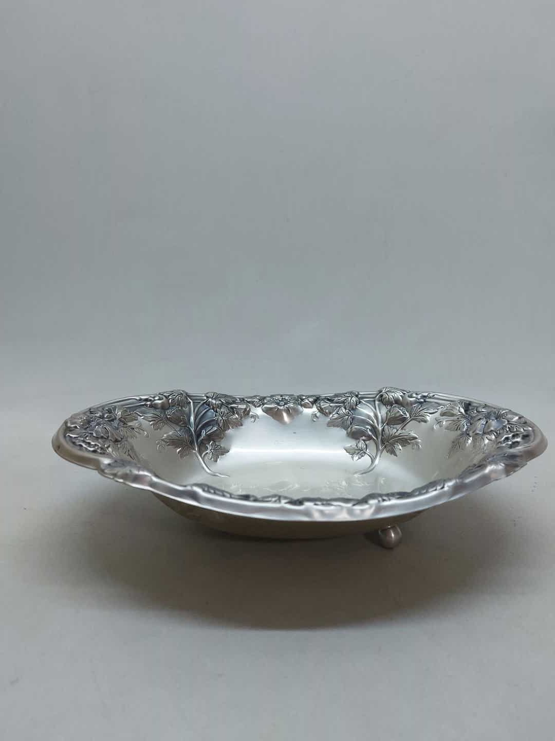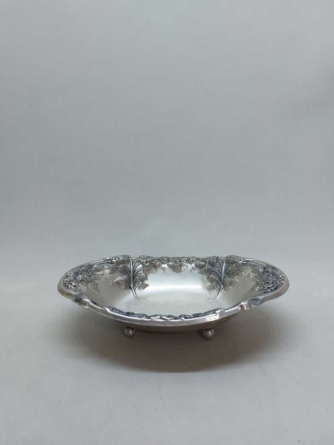 WMF Ikora επάργυρο σκεύος/φοντανιέρα με ανάγλυφα λουλούδια σε ασημί απόχρωση 6,5x27x21,5cm (λείπει το ένα ποδαράκι, παρόλα αυτά, μπορεί να σταθεί όρθια, όπως δείχνει και η φωτογραφία) Κωδικός προϊόντος: #s8633