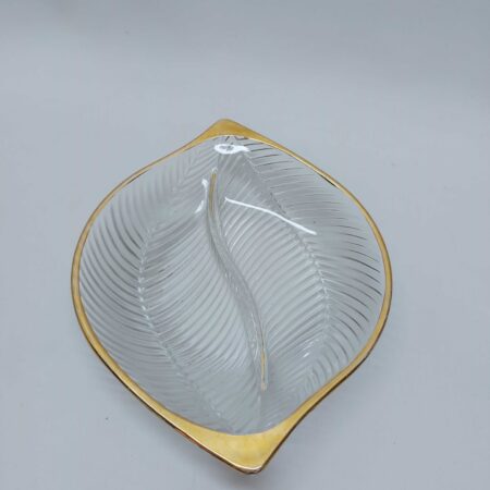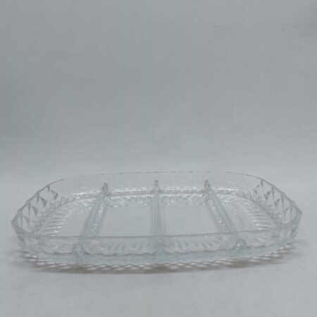 Vintage γυάλινη σκαλιστή ξηροκαρπιέρα 4 θέσεων Italy 3,5x29,5x19,5cm