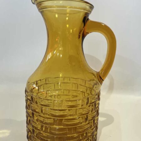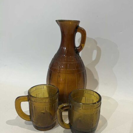 Vintage γυάλινη καράφα με 2 ποτήρια , σε απόχρωση κεχριμπάρι
