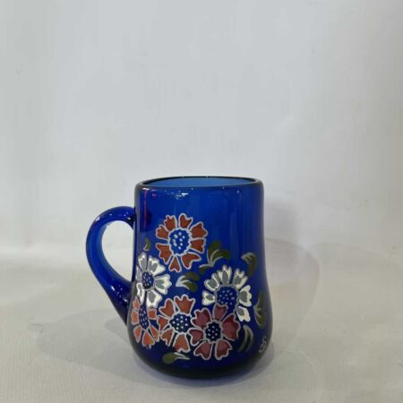 Vintage γυάλινη κούπα σε μπλε χρώμα, ζωγραφισμένη στο χέρι 12x13